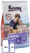 KARMY STARTER Здоровое питание специально разработанное для щенков всех пород с момента отъема до 4-х месяцев, беременных и кормящик сук.