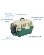 Корпус клетки выполнен из пластика, дверка закрывается на нержавеющий замок, пол переноски усилен.